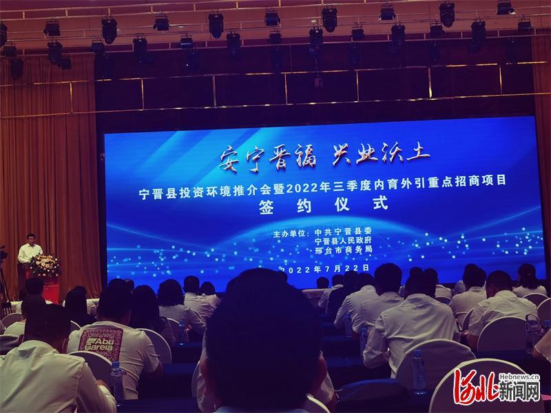 河北網(wǎng)7月22日訊(河北日報記者邢云)安寧晉福,興業(yè)沃土。今天,寧晉縣投資環(huán)境推介會暨2022年三季度內育外引重點招商項目簽約儀式在邢臺舉行。會上,46個重點招商項目集中簽約,總投資285.58億元。這昭示著該縣招商選資再發(fā)力,項目建設再沖鋒。