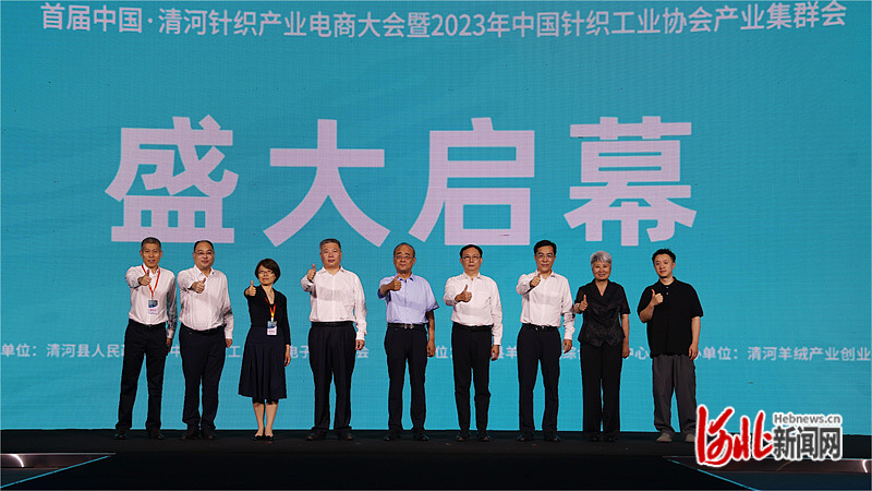 首屆中國·清河針織產(chǎn)業(yè)電商大會(huì)暨2023年中國針織工業(yè)協(xié)會(huì)產(chǎn)業(yè)集群會(huì)現(xiàn)場(chǎng)開幕式。裴海潮 攝