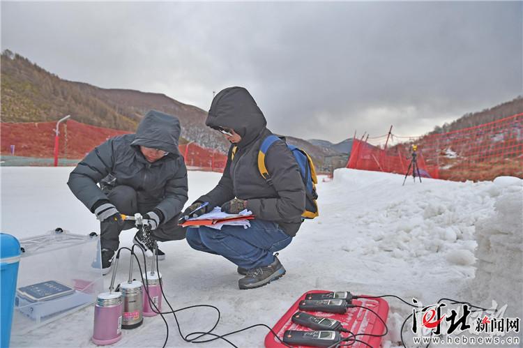 3月14日,河北省氣象局工作人員在崇禮云頂滑雪場(chǎng)收集雪質(zhì)信息。 記者張昊 趙杰攝
