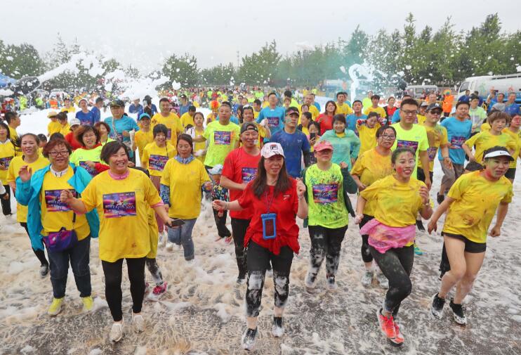 當(dāng)日,2019河北張家口全民迎冬奧第五屆炫跑障礙賽在河北張家口經(jīng)濟(jì)開發(fā)區(qū)明湖景觀大道開賽。 新華社發(fā)(武殿森攝)