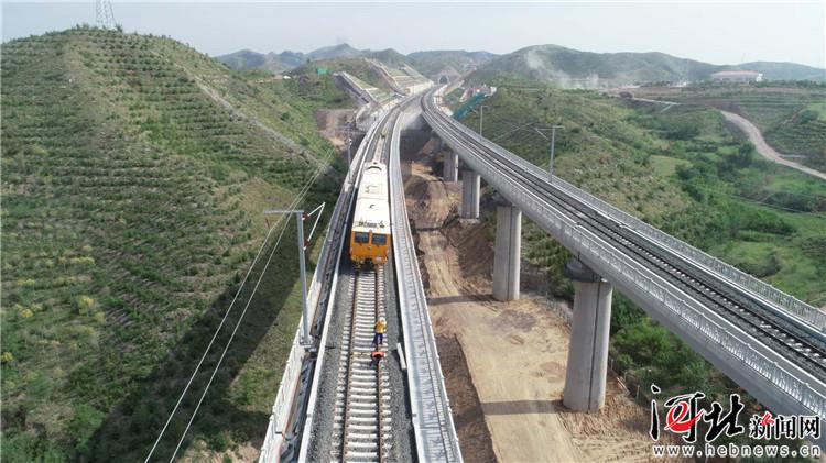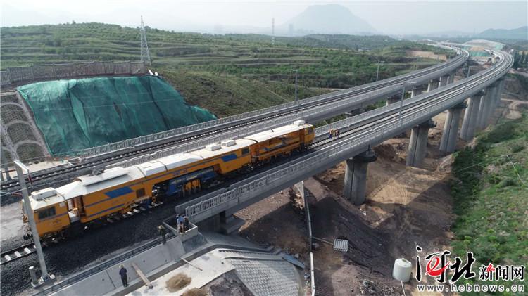 圖為大機(jī)在下花園區(qū)境內(nèi)的橋梁、路基上精搗作業(yè)。