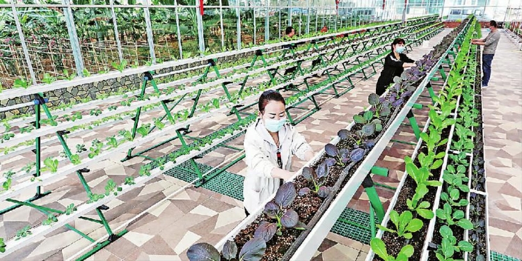 4月26日,農(nóng)戶在河北張家口市萬(wàn)全區(qū)安家堡鄉(xiāng)華旭現(xiàn)代農(nóng)業(yè)園管理無(wú)土栽培蔬菜。近年來(lái),張家口市萬(wàn)全區(qū)積極引導(dǎo)農(nóng)民調(diào)整農(nóng)業(yè)產(chǎn)業(yè)結(jié)構(gòu),因地制宜發(fā)展瓜果、蔬菜、中藥材等特色種植,并引進(jìn)香焦、無(wú)花果、火龍果等熱帶水果,開辟農(nóng)戶增收致富新路徑。目前,萬(wàn)全區(qū)特色種植面積達(dá)4.6萬(wàn)余畝,帶動(dòng)1.5萬(wàn)農(nóng)戶實(shí)現(xiàn)增收,戶均增收1000余元。武殿森、李旭東、劉晨晨攝影報(bào)道