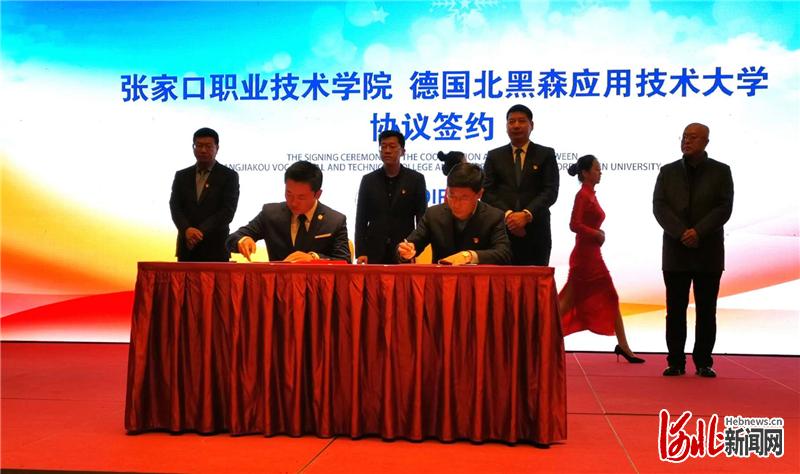 圖為張家口職業(yè)技術(shù)學(xué)院與德國北黑森應(yīng)用技術(shù)大學(xué)簽約現(xiàn)場。河北日報(bào)記者王雪威攝