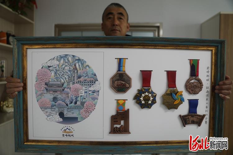 10月17日,張輝展示“登峰越城·跑遍張家口”6站賽事的獎牌。