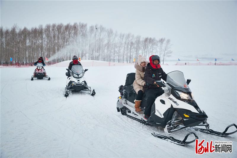 圖為游客在天鵝湖體驗雪地摩托。