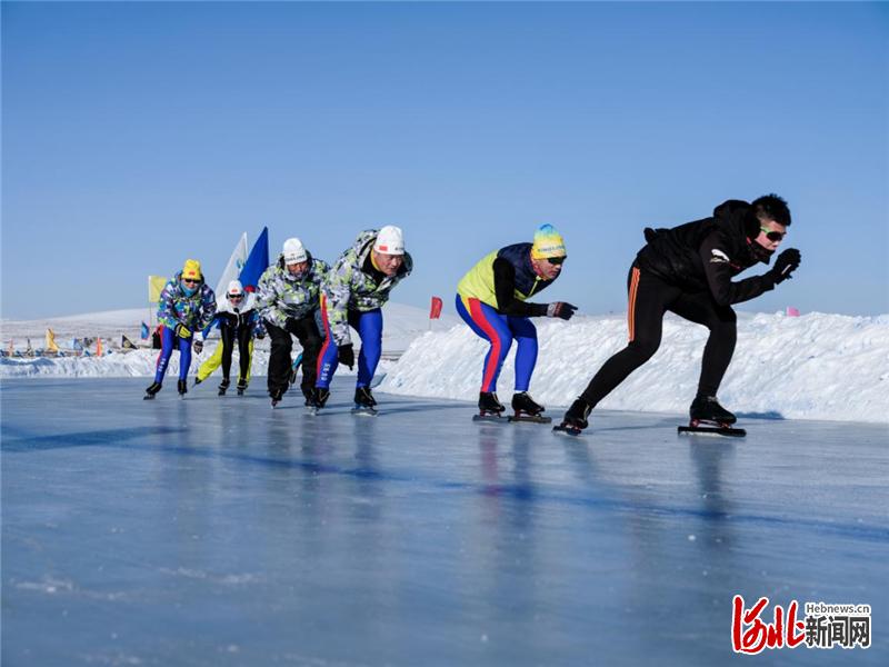 圖為沽源縣滑冰協(xié)會會員在天鵝湖冰場訓(xùn)練。