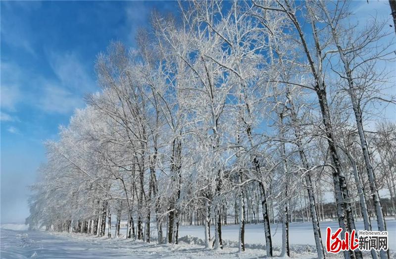 圖為天鵝湖周邊霧凇景觀。