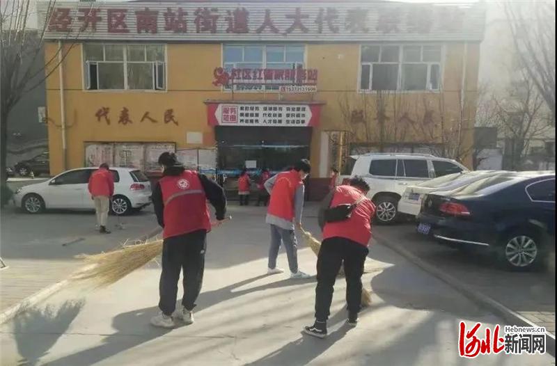 圖為經(jīng)開區(qū)南站街道開展衛(wèi)生大掃除活動(dòng)。