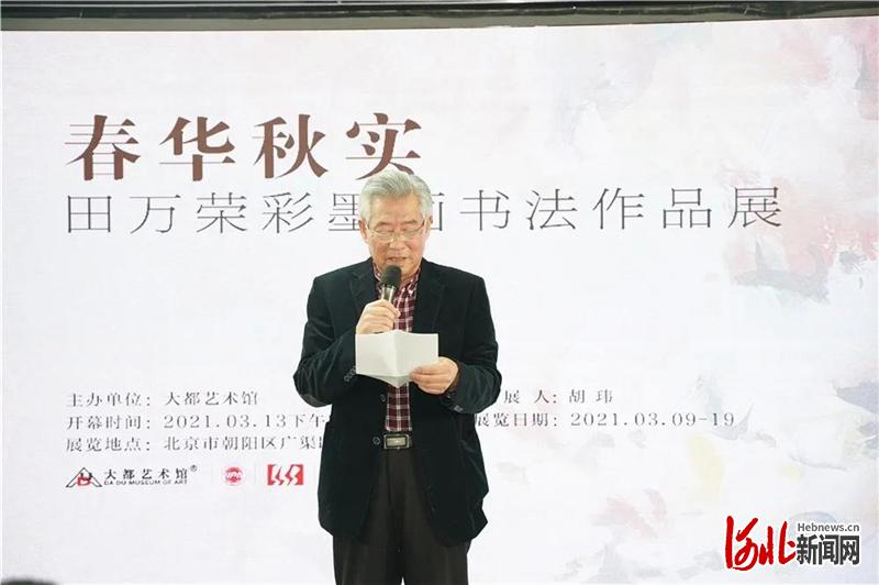 河北新聞網(wǎng)訊(張潤(rùn)海)2021年3月13日,《春華秋實(shí)——田萬榮彩墨畫書法精品展》在北京大都藝術(shù)館開幕。此次展覽由大都藝術(shù)館主辦,國(guó)際水墨畫交流協(xié)會(huì)、中·東歐文化經(jīng)貿(mào)交流協(xié)會(huì)、競(jìng)園、中央電視臺(tái)書畫頻道等國(guó)內(nèi)外重要機(jī)構(gòu)大力支持。