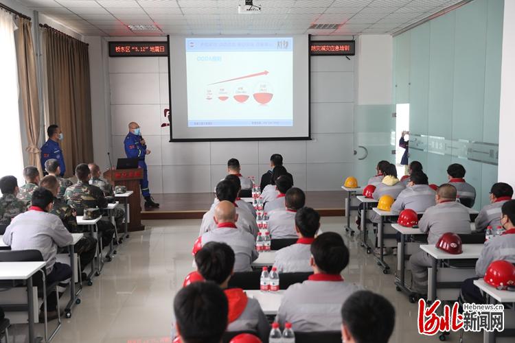 5月8日,藍(lán)天救援隊(duì)隊(duì)員在河北省張家口市橋東區(qū)防震應(yīng)急救援培訓(xùn)中授課。