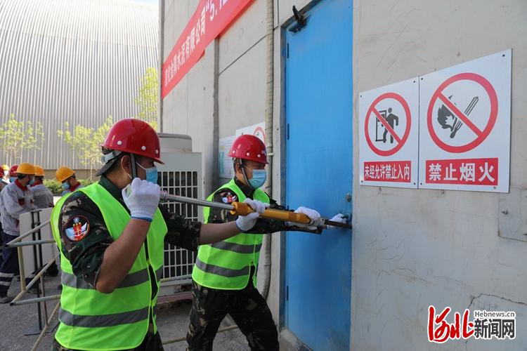 5月8日,河北省張家口市橋東區(qū)防震救援人員在演練破拆。