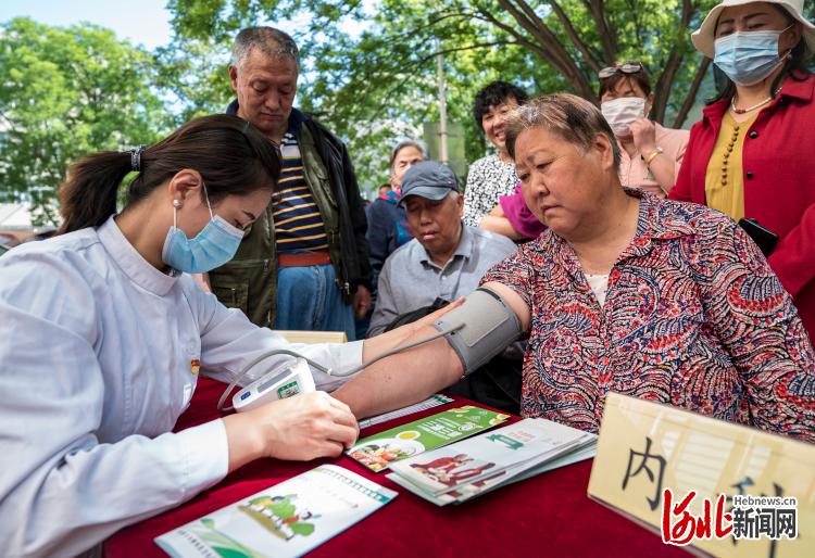 2021年5月19日,河北省張家口市第二醫(yī)院醫(yī)生在張家口經(jīng)濟(jì)開發(fā)區(qū)南站街道開發(fā)區(qū)社區(qū)為社區(qū)居民義診。