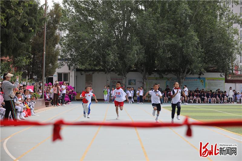 圖為5月20日,河北省張家口市橋東區(qū)工人村小學(xué)趣味運(yùn)動(dòng)會(huì)上,同學(xué)們在游戲“沖向勝利”中競技比拼。