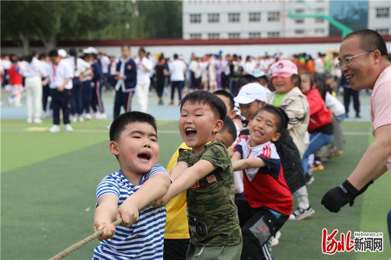 圖為5月20日,河北省張家口市橋東區(qū)工人村小學(xué)趣味運(yùn)動(dòng)會(huì)上,同學(xué)們在拔河。