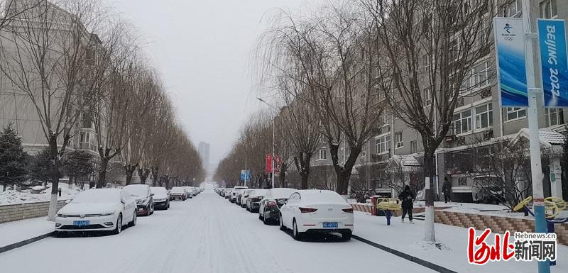 2月13日清晨,冬奧之城張家口再次迎來降雪天氣,山城銀裝素裹,為正在家門口舉辦的冬奧會增添了別樣韻味。圖為北京2022年冬奧會和冬殘奧會示范社區(qū)——張家口市橋東區(qū)東方苑社區(qū)東方苑小區(qū)雪景。河北日報記者王雪威攝