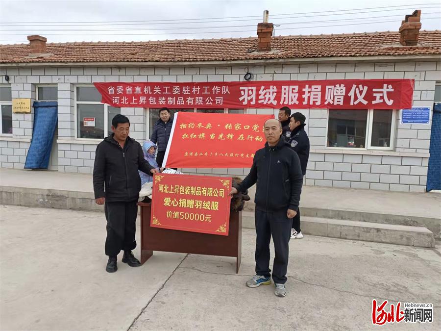 2022年1月28日,河北省直工委駐康?h二號卜鄉(xiāng)八大股村工作隊與河北上昇包裝制品有限公司共同組織羽絨服捐贈活動。