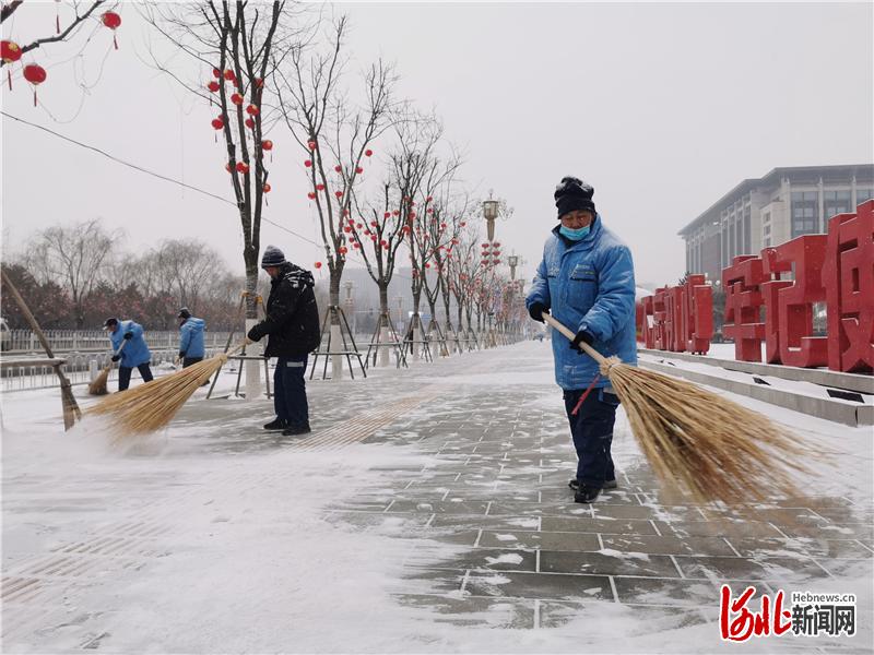 圖為張家口經(jīng)開區(qū)環(huán)衛(wèi)工人清掃積雪。河北日報(bào)記者郭曉通攝