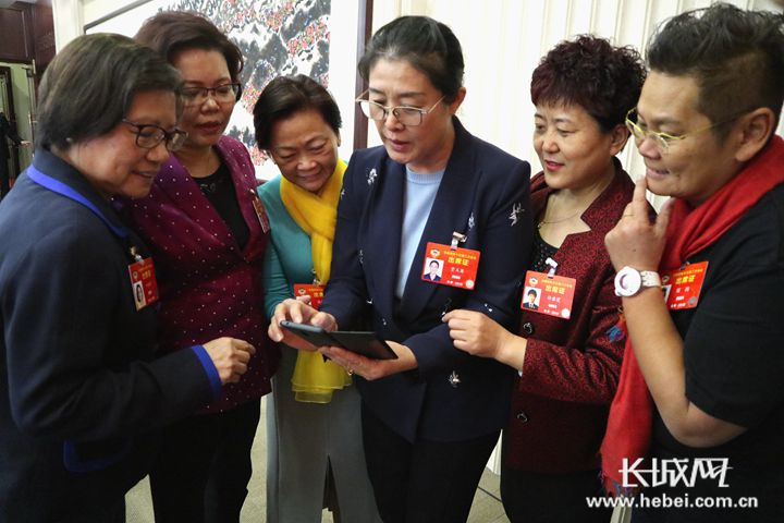 賈玉英委員打開手機(jī)的“河北省巧手坊”小程序,介紹河北婦女手工作品。長城新媒體記者 煙成群 攝
