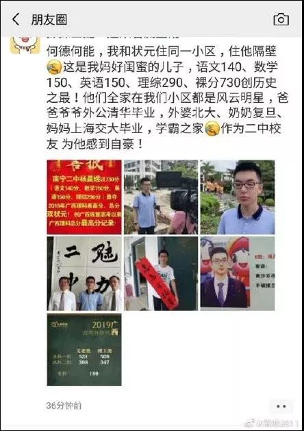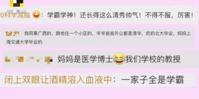 不僅是“超級學霸”,而且是“祖?zhèn)鞯膶W霸”。這自然又加劇了輿論的熱議。人們從對一個“學霸”的贊嘆,變?yōu)閷Α皩W霸之家”的膜拜。不過,打臉來得太快。楊晨煜辟謠稱,網(wǎng)傳說法是謠言,父母都畢業(yè)于廣西本地學校,奶奶沒上過大學。