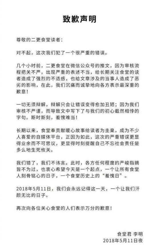 公號(hào)“二更食堂”發(fā)布空姐遇害案低俗文章被約談。