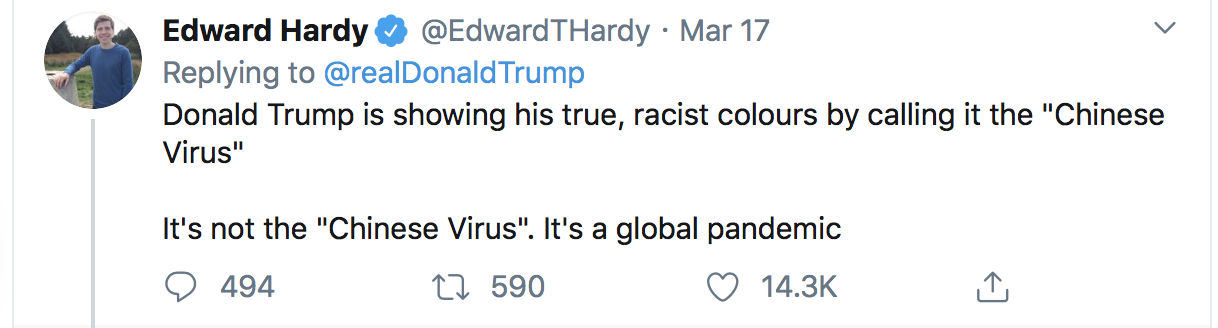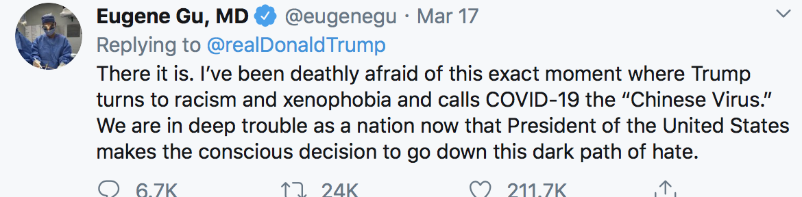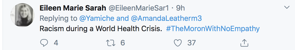 網(wǎng)民:“那是新型冠狀病毒,你這個種族主義者。”↓
