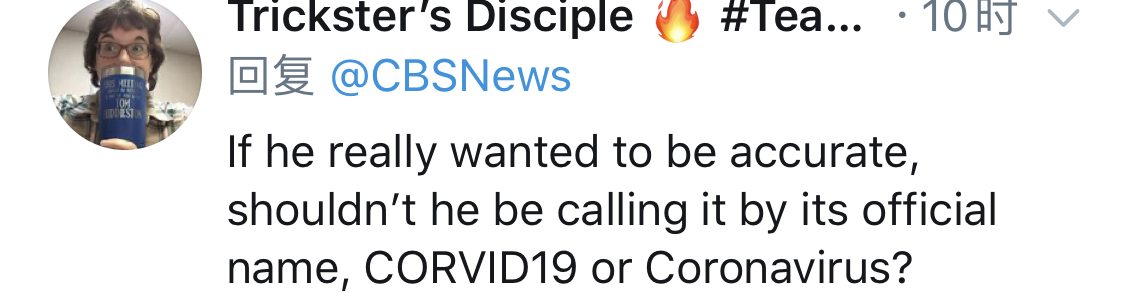 網(wǎng)民:如果他真的追求用詞準(zhǔn)確,難道他不應(yīng)該用官方名稱,新型冠狀病毒(COVID-19)嗎?↓