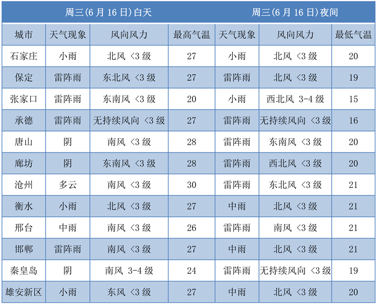15日夜間到16日,張家口、承德西部、保定、雄安新區(qū)、廊坊南部、石家莊、滄州西部、衡水北部、邢臺(tái)西部、邯鄲陰有雷陣雨或陣雨,雷雨時(shí)局地伴有短時(shí)強(qiáng)降水、短時(shí)大風(fēng)等強(qiáng)對(duì)流天氣,其中張家口西部、保定西部、石家莊西部有中到大雨,其他地區(qū)多云。
