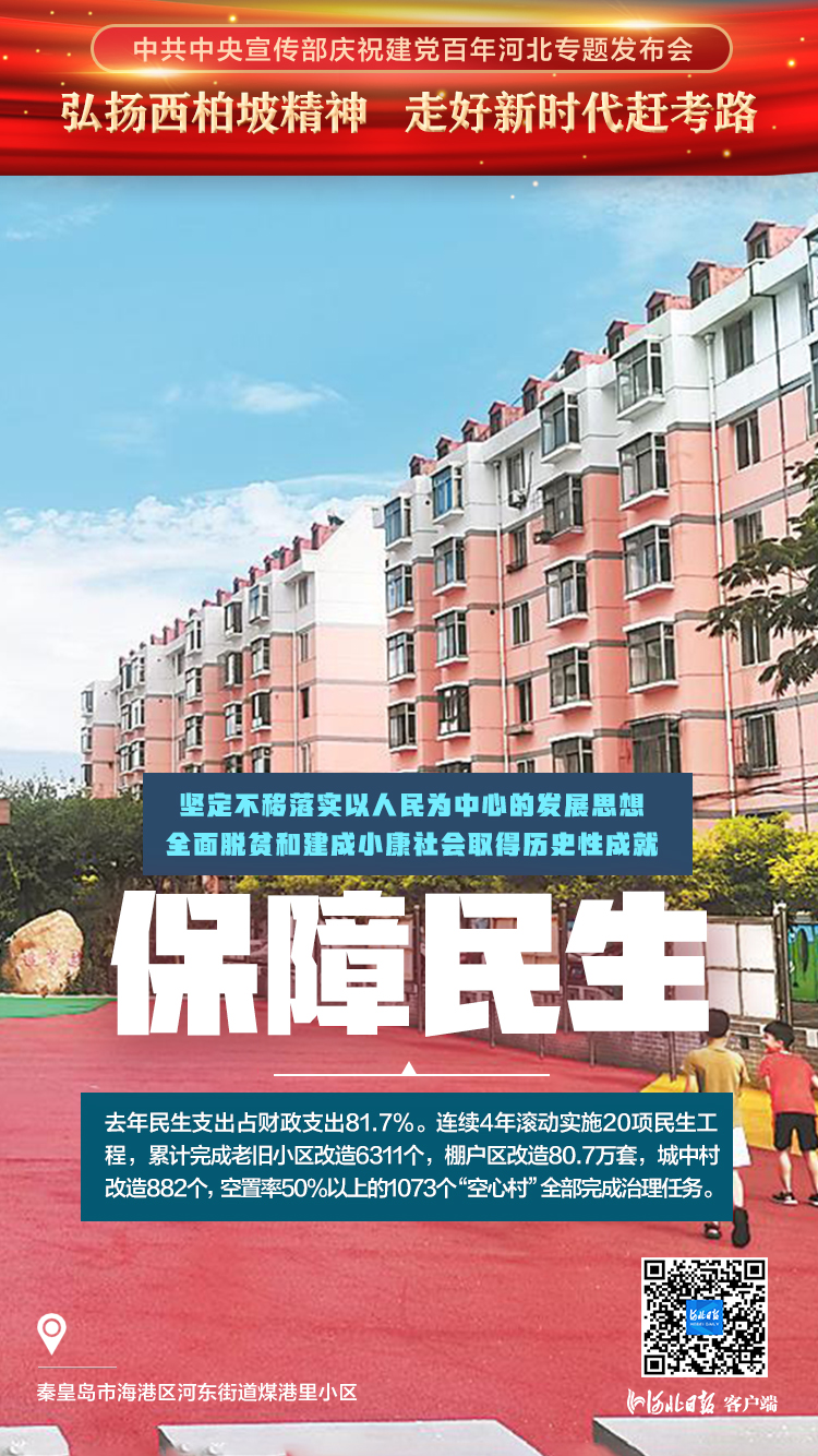 河北保障改善民生力度空前,為民務(wù)實(shí)惠及群眾。優(yōu)先保障民生投入,去年民生支出增長9.7%,占財(cái)政支出81.7%。連續(xù)4年滾動(dòng)實(shí)施20項(xiàng)民生工程,累計(jì)完成老舊小區(qū)改造6311個(gè),棚戶區(qū)改造80.7萬套,城中村改造882個(gè),空置率50%以上的1073個(gè)“空心村”全部完成治理任務(wù)。結(jié)合黨史學(xué)習(xí)教育著力辦好10件民生實(shí)事,加快推進(jìn)幼兒園所有行政村全覆蓋,每個(gè)縣謀劃建設(shè)康復(fù)醫(yī)療中心,全面開展小學(xué)校內(nèi)課后免費(fèi)服務(wù),解決小學(xué)生下午3點(diǎn)半后難題,實(shí)現(xiàn)有服務(wù)需求的學(xué)生全覆蓋。