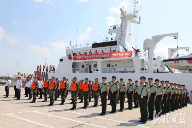 當(dāng)日上午9時(shí)30分,出航儀式在秦皇島碼頭舉行,河北海警局為“碧海2021”聯(lián)合執(zhí)法行動(dòng)按下了“起航鍵”。