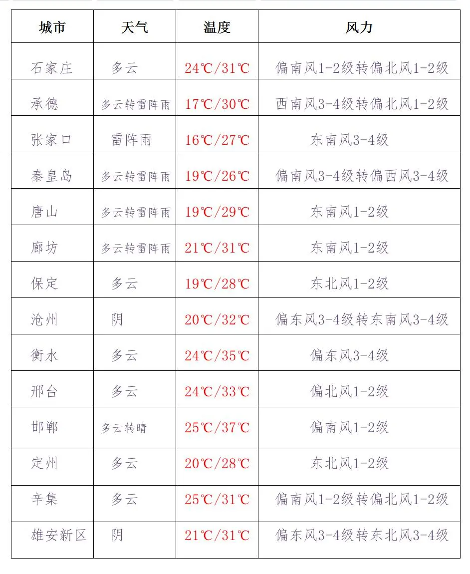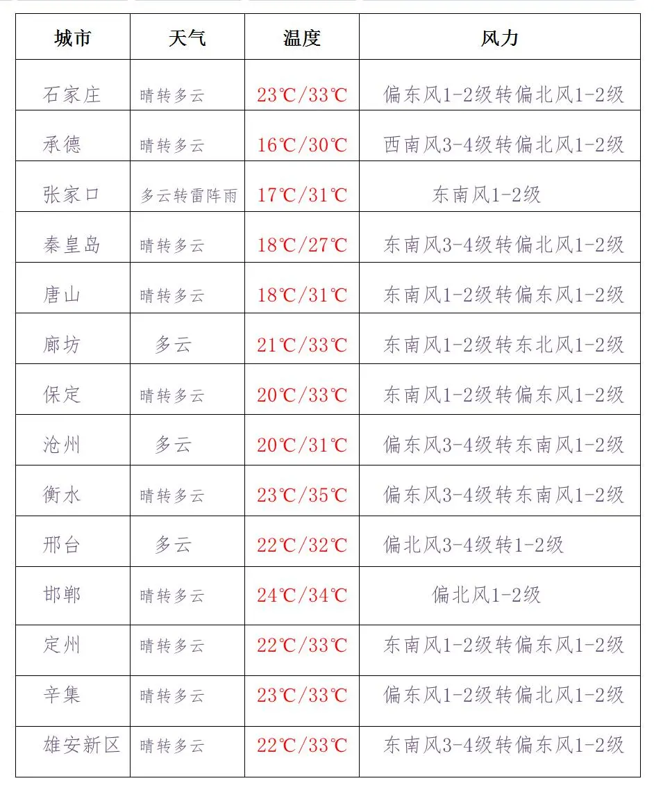 明天夜間到24日,保定、廊坊及以北地區(qū)和石家莊西部多云轉(zhuǎn)陰有雷陣雨或陣雨,其他地區(qū)多云。