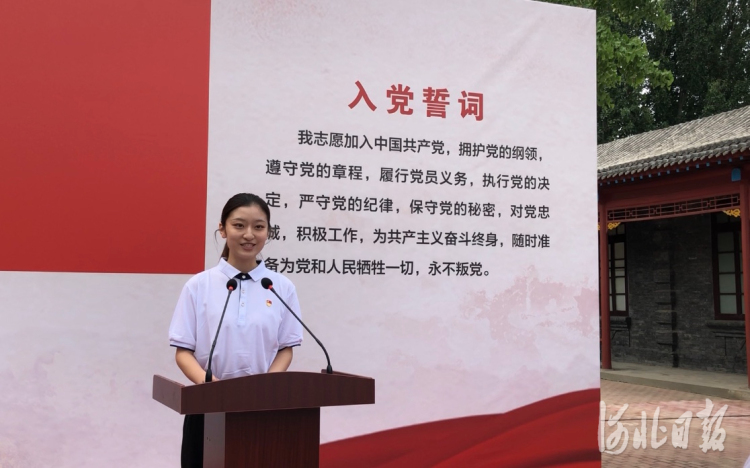 6月23日上午,保定市大學(xué)生新黨員代表入黨宣誓活動舉行,圖為河北大學(xué)新聞傳播學(xué)院本科生張澤卿代表大學(xué)生新黨員發(fā)言。河北日報記者寇國瑩攝