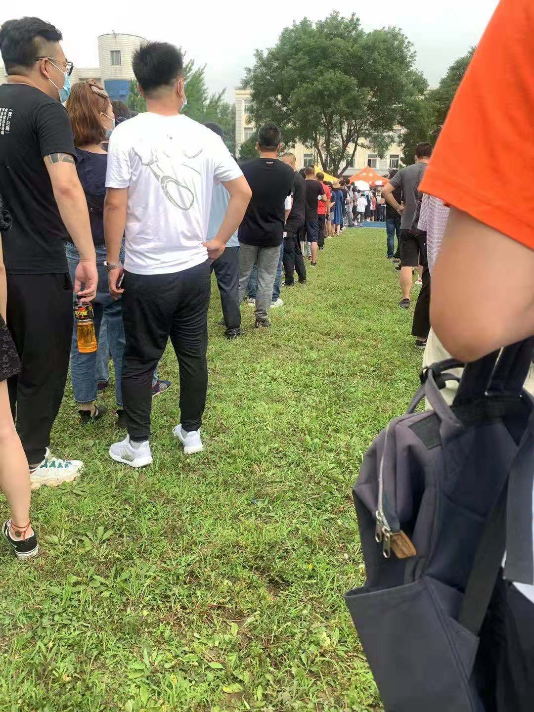 步行10分鐘來到中國刑事警察學(xué)院白山路校區(qū)東門門前。校門前已經(jīng)排起了長長的隊(duì)伍排起了長長的隊(duì)伍,他們都是來參加警犬競拍的,有人來自山東、有人來自湖北,甚至還有廣州的競拍者,此時(shí)還不到9時(shí)。