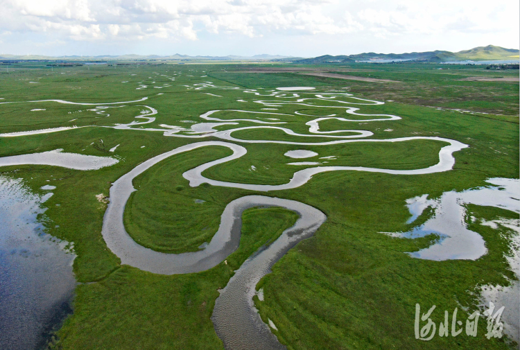 2021年7月17日拍攝的河北省張家口市塞北管理區(qū)青青草原灤河水生態(tài)景觀,蜿蜒的灤河猶如銀絲帶“飄落”在碧綠的塞北大地。通訊員 武殿森 攝影報道