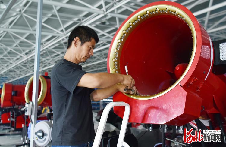 2021年7月19日,位于河北省張家口市宣化區(qū)京張奧園區(qū)的卡賓滑雪裝備制造有限公司的員工在裝配造雪機(jī)。河北省張家口市宣化區(qū)發(fā)揮裝備制造技術(shù)優(yōu)勢(shì),走綠色發(fā)展之路,推進(jìn)冰雪產(chǎn)業(yè)園建設(shè),不斷延伸冰雪產(chǎn)業(yè)鏈。目前,該區(qū)冰雪裝備制造企業(yè)有18家,年產(chǎn)值1.8億元,帶動(dòng)就業(yè)3000余人。 通訊員 陳曉東 攝影報(bào)道