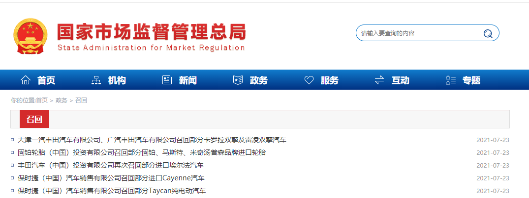 日前,天津一汽豐田汽車有限公司、廣汽豐田汽車有限公司根據(jù)《缺陷汽車產(chǎn)品召回管理條例》和《缺陷汽車產(chǎn)品召回管理條例實施辦法》的要求,向國家市場監(jiān)督管理總局備案了召回計劃,自2021年8月2日起召回以下車輛。