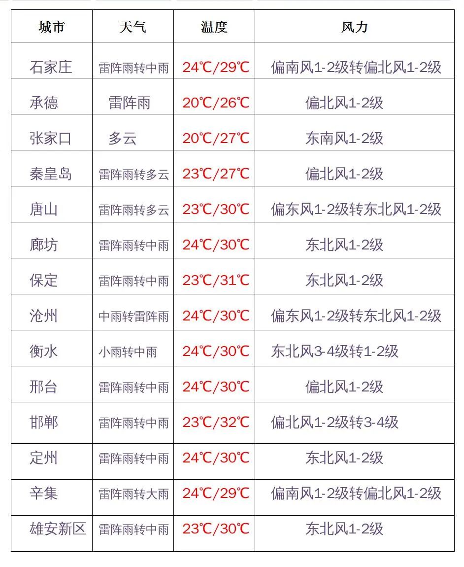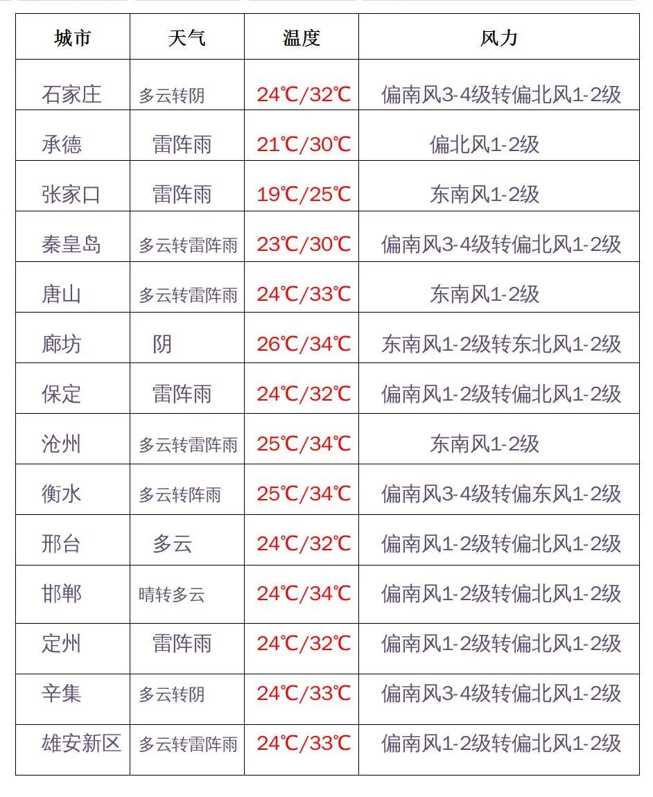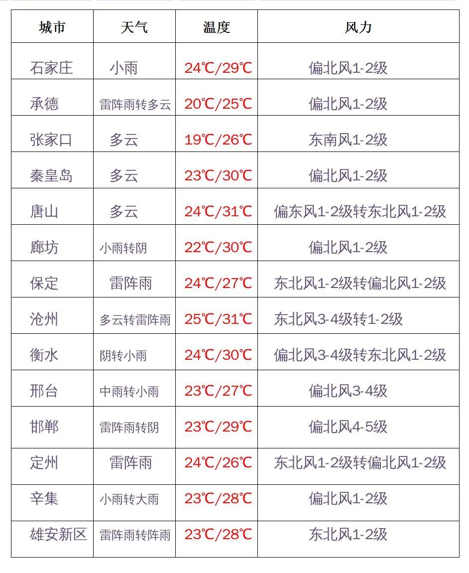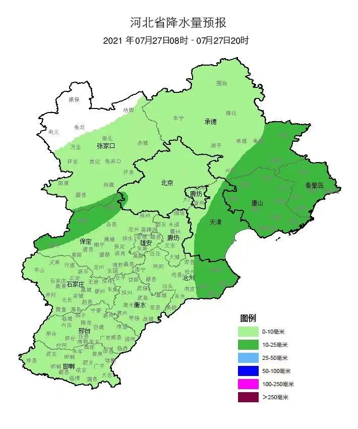 27日白天,全省陰,大部分地區(qū)有雷陣雨或陣雨,其中承德東部、唐山、秦皇島、保定西北部、滄州東部有中到大雨,局地暴雨,雷雨時(shí)局地伴有短時(shí)強(qiáng)降水、短時(shí)大風(fēng)等強(qiáng)對(duì)流天氣。