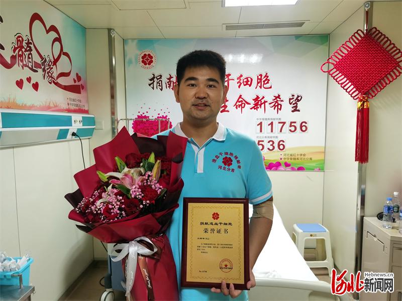 今年5月,劉英哲接到河北省紅十字會工作人員打來的電話,說一位血液病患者和他的血樣配型初配成功,問他是否同意捐獻!皼]想到能配型成功,我當時就同意了,回去和家人一說,他們也都支持。”劉英哲說。