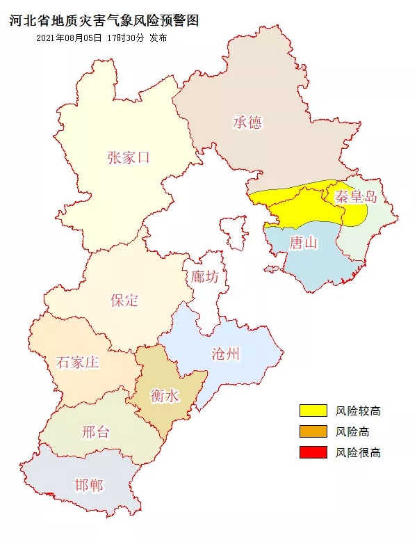 河北省氣象災害防御中心2021年08月05日11時發(fā)布城市內(nèi)澇氣象風險等級預報: