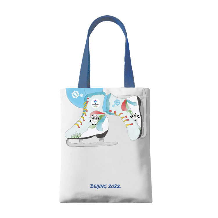 帆布袋材質(zhì)結(jié)實(shí)耐用,白底藍(lán)帶,底部印有北京冬奧會(huì)“BEIJING 2022”印鑒,搭配水彩漫畫式冰鞋,冰鞋上印有北京冬奧會(huì)會(huì)徽,美麗大方,色彩清爽。內(nèi)置小兜與磁扣,方便收納物品,容量大,超實(shí)用。背上它上街不僅時(shí)尚拉風(fēng),也體現(xiàn)出“綠色辦奧”的理念。