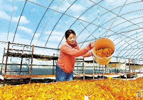 李季梅在大棚內(nèi)晾曬金蓮花。河北日?qǐng)?bào)記者張昊攝