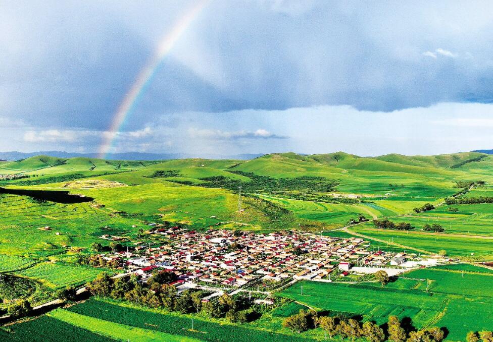 雨后,大石砬村上空的彩虹與遠(yuǎn)山、草原構(gòu)成一幅美麗畫(huà)卷。河北日?qǐng)?bào)記者張昊攝