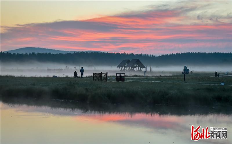 清晨,塞罕壩機械林場七星湖濕地公園,柔紗般的霧靄隨風(fēng)飄動,如夢如幻。