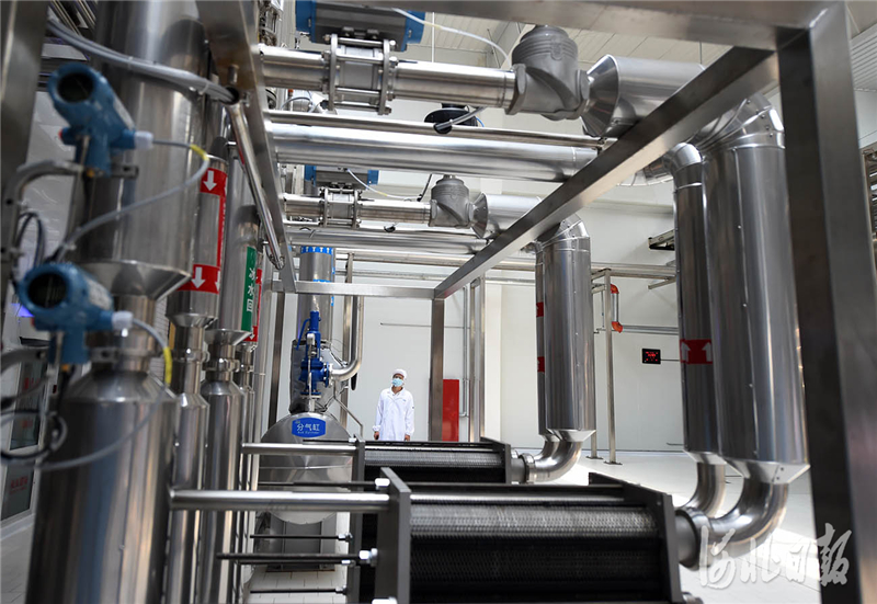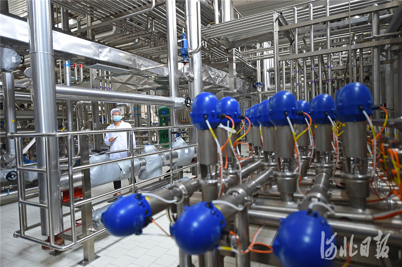 2021年8月15日,工人在河北省威縣樂(lè)牛乳業(yè)有限公司年產(chǎn)12萬(wàn)噸液體乳生產(chǎn)線擴(kuò)建項(xiàng)目前處理車(chē)間巡檢。河北日?qǐng)?bào)記者趙永輝攝影報(bào)道