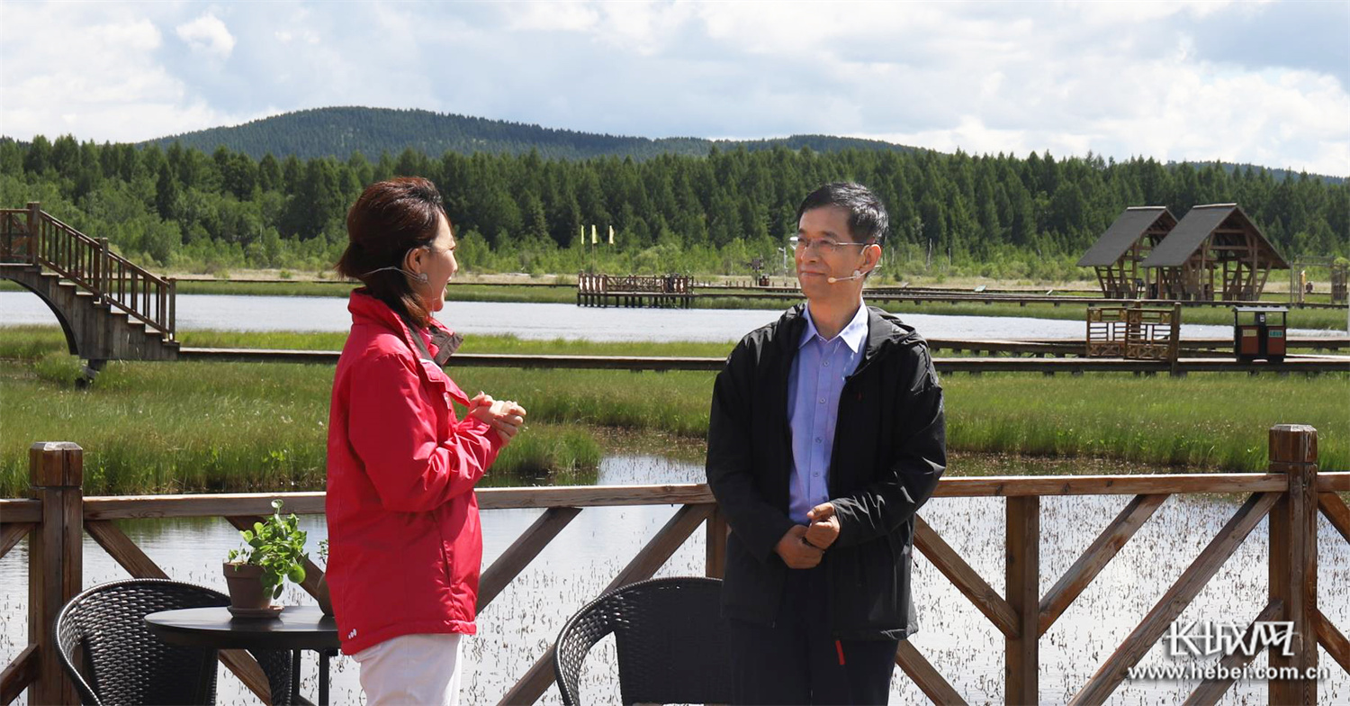 河北省委黨校(河北行政學(xué)院)首席專家孟慶云(右)對塞罕壩奇跡進行解讀。米晗 攝