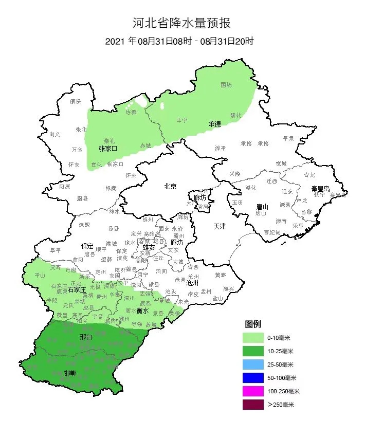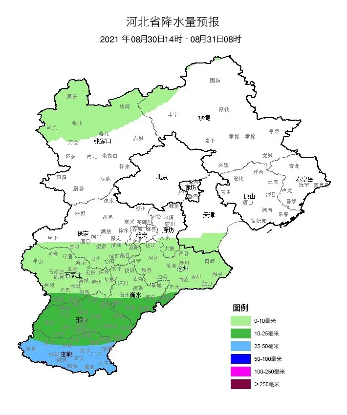 雨量較大地區(qū)主要出現(xiàn)在石家莊、