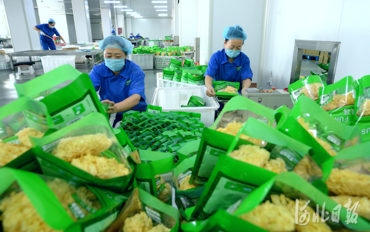 2021年8月28日,河北省滄州市華海順達(dá)糧油調(diào)料有限公司工人在包裝農(nóng)產(chǎn)品。河北日報(bào)記者杜柏樺攝影報(bào)道