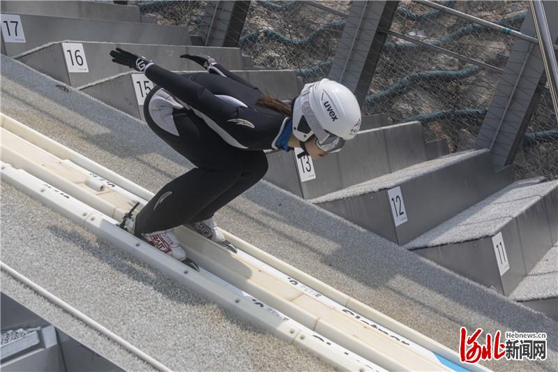 圖為運(yùn)動(dòng)員在淶源國(guó)家跳臺(tái)滑雪訓(xùn)練科研基地訓(xùn)練。 通訊員 羅大慶攝