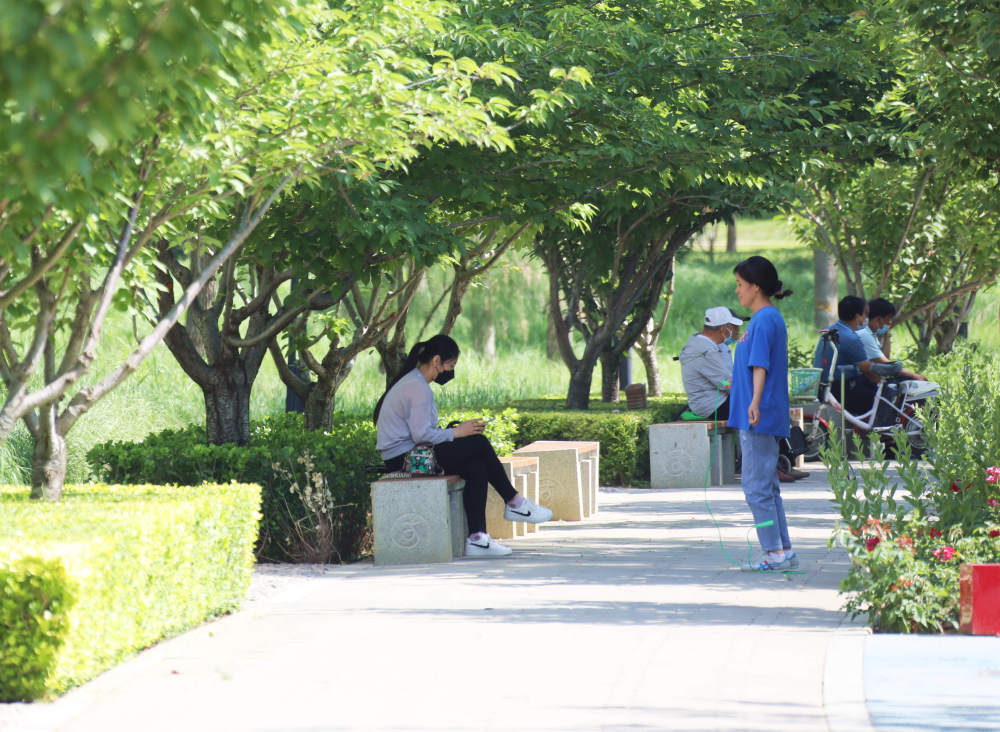 6月2日,居民在固安縣濱河生態(tài)運動公園休閑。(門叢碩 攝)