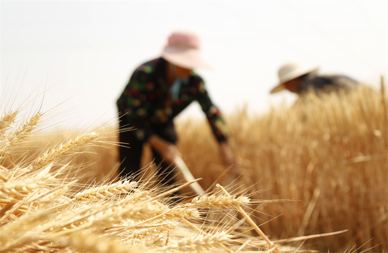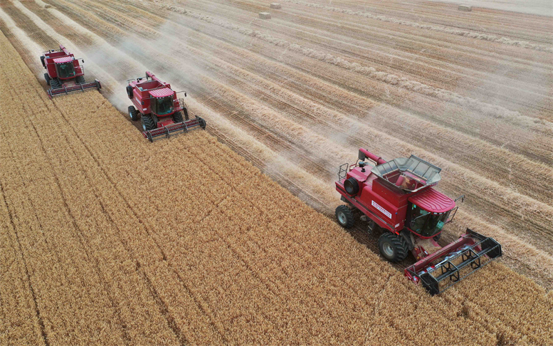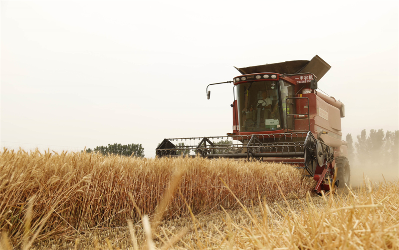 “三夏”時節(jié),河北省邢臺市麥?zhǔn)展ぷ魅嬲归_,農(nóng)民利用晴好天氣加緊搶收小麥,確保顆粒歸倉。新華社發(fā)(張馳 攝)