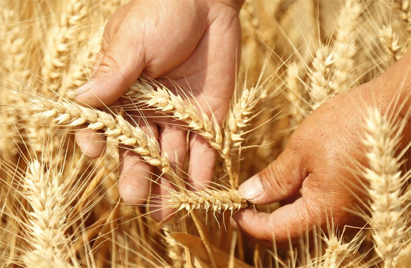 6月10日,在河北省邢臺市南和區(qū)閻里鄉(xiāng),農(nóng)民查看小麥?zhǔn)欠襁_(dá)到收割標(biāo)準(zhǔn)。新華社發(fā)(張馳 攝)